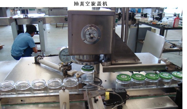 XJ-1型數(shù)控馬口鐵爪式真空旋蓋機(jī)是在技術(shù)上采用了真空室的完全密封結(jié)構(gòu),在真空室中先抽瓶子內(nèi)真空在配蓋旋蓋。并且利用目前成熟的電氣控制技術(shù)和高性能的氣動(dòng)元件實(shí)現(xiàn)編程控制從而實(shí)現(xiàn)直筒式全密封真空室的旋轉(zhuǎn)驅(qū)動(dòng)。真空旋蓋機(jī)的包裝容器內(nèi)能保持真空同時(shí)具有剛性,不易癟。蓋子內(nèi)用密封膠將瓶子旋合,瓶?jī)?nèi)的真空可以長(zhǎng)時(shí)間保存。真空室處于筒狀空間幾乎不存在間隙并無泄漏,他的抽真空效率是高、能耗低。