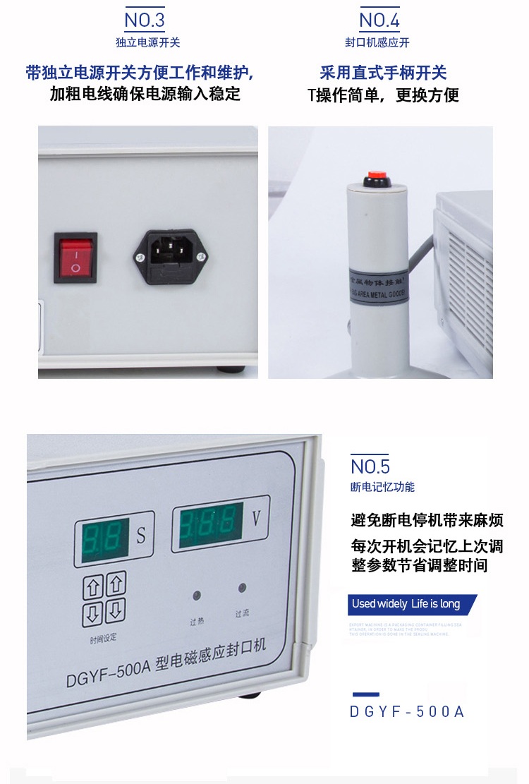 該封口機為手持式鋁箔封口機,是一種便攜式電磁感應加熱封口設備,專為制藥、化工、農藥、食品、化妝品、輕工行業對容器進行鋁箔嚴密封口